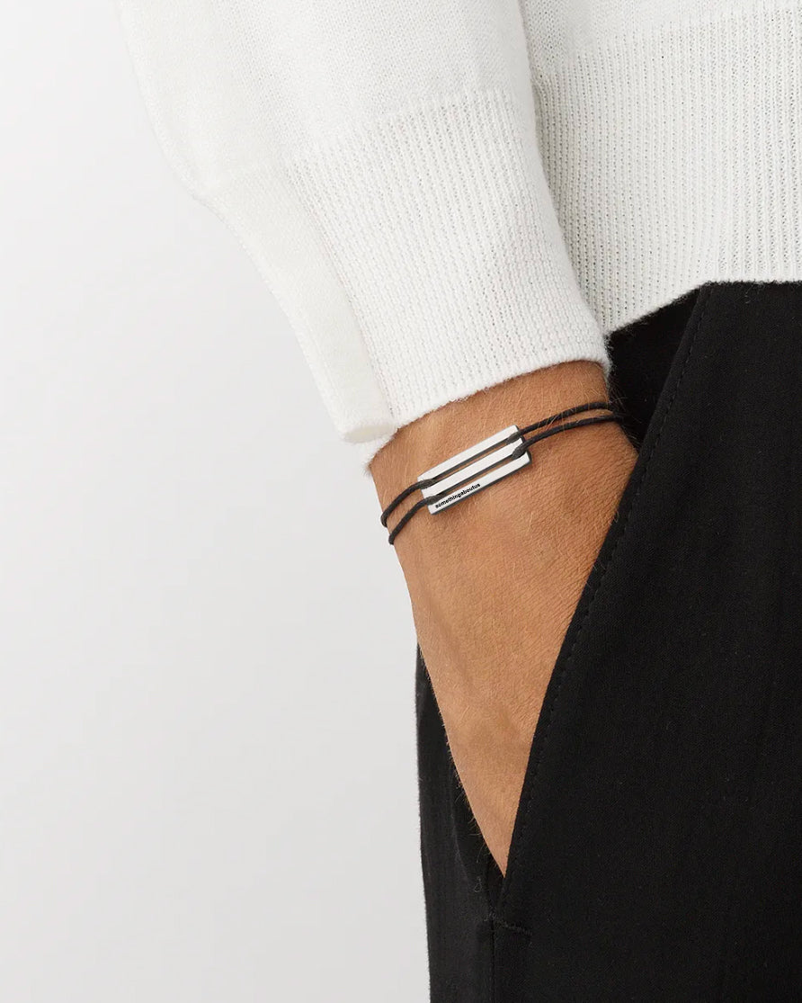 Narrow Rectangle Necklace Brushed Silver / Pavé Black