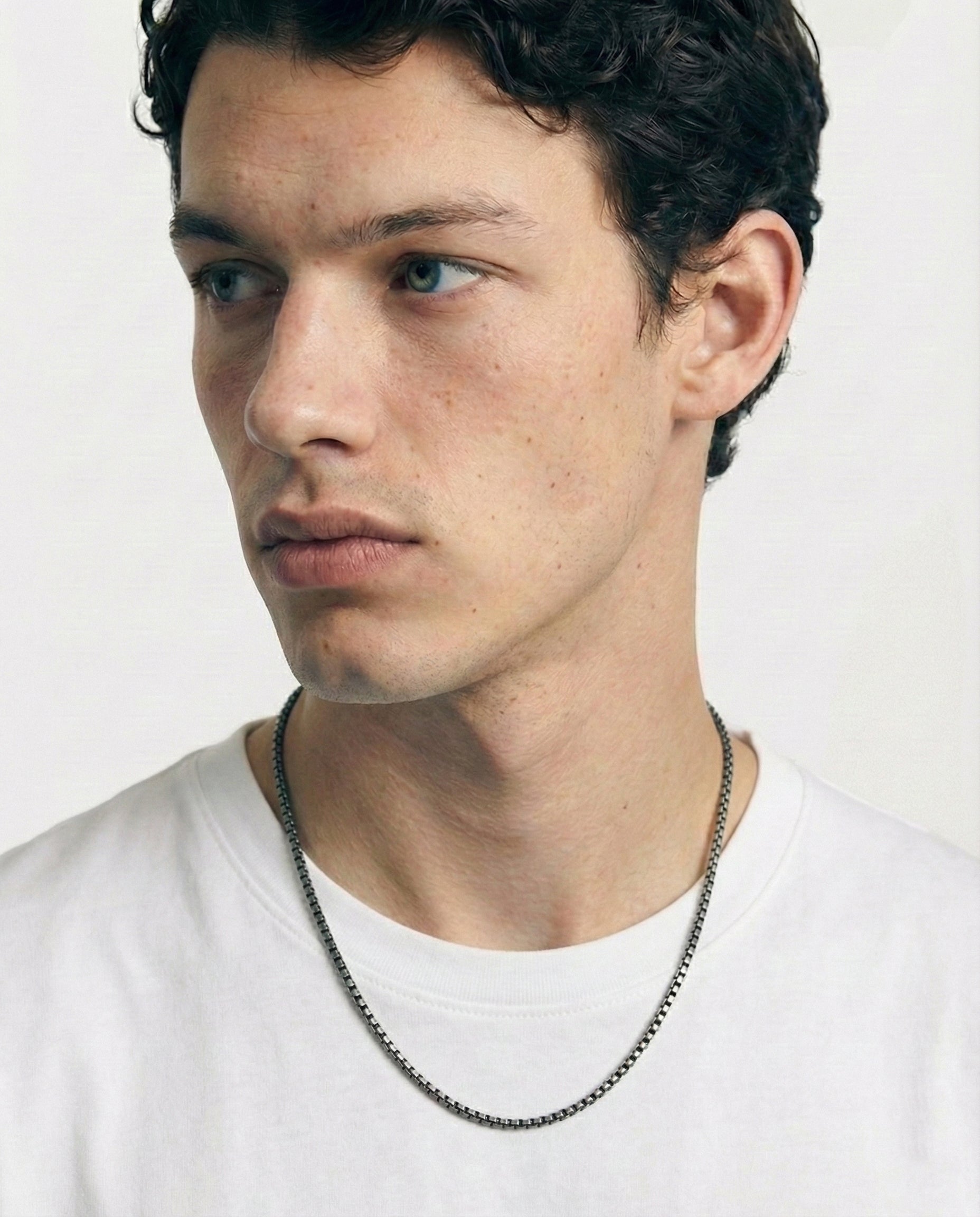 The Box Chain Necklace is crafted from polished sterling silver. Its timeless design makes it perfect for any occasion. Enjoy a sophisticated accessory that won't let you down.