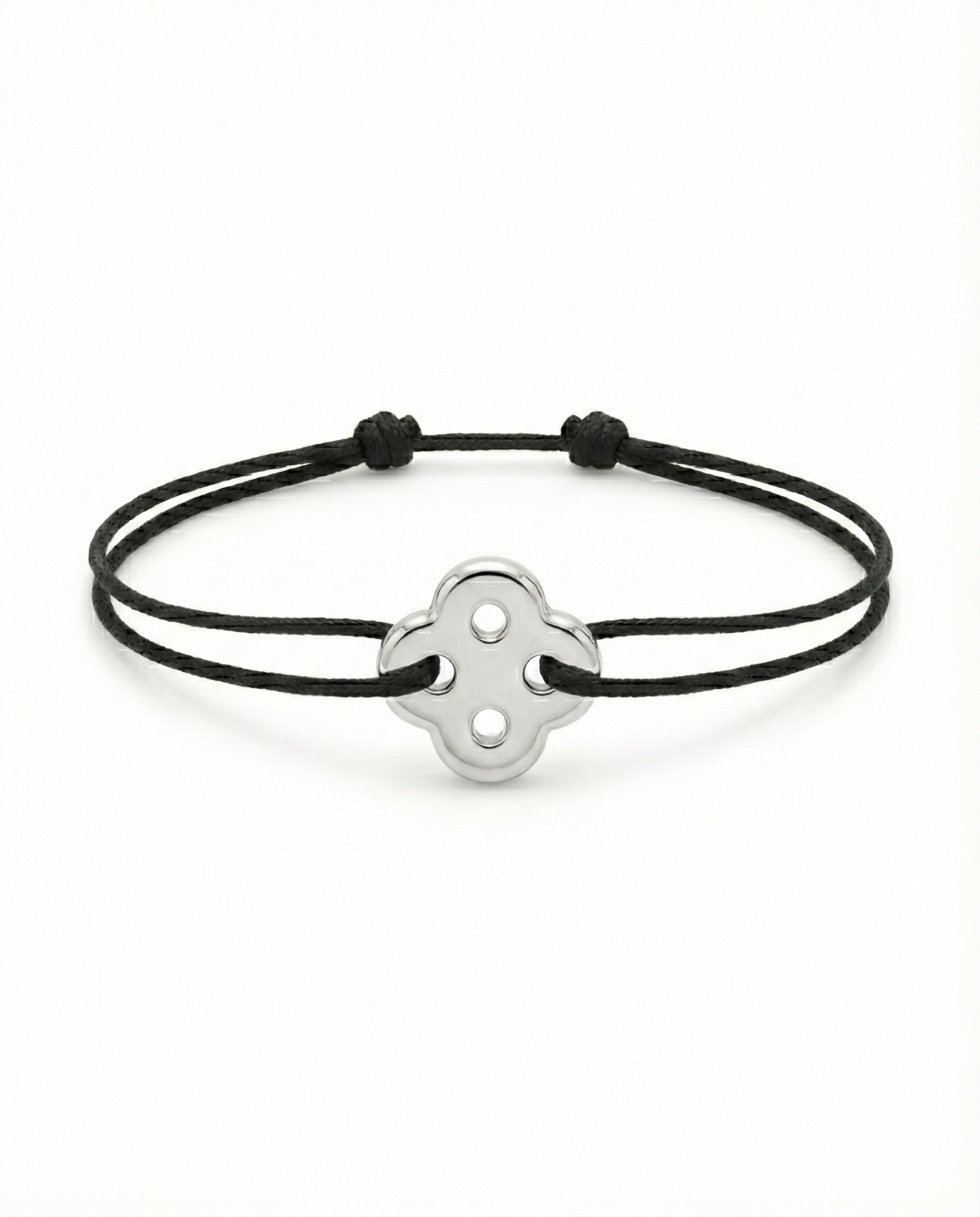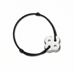 The Flow Bracelet, skilfully hand-crafted in Istanbul from sterling silver with a polished finish and a fine black cord.