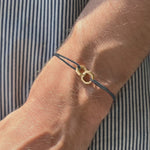 The Double Octagon Bracelet, is skilfully hand-crafted in Istanbul from sterling silver with a polished finish and a fine black cord.