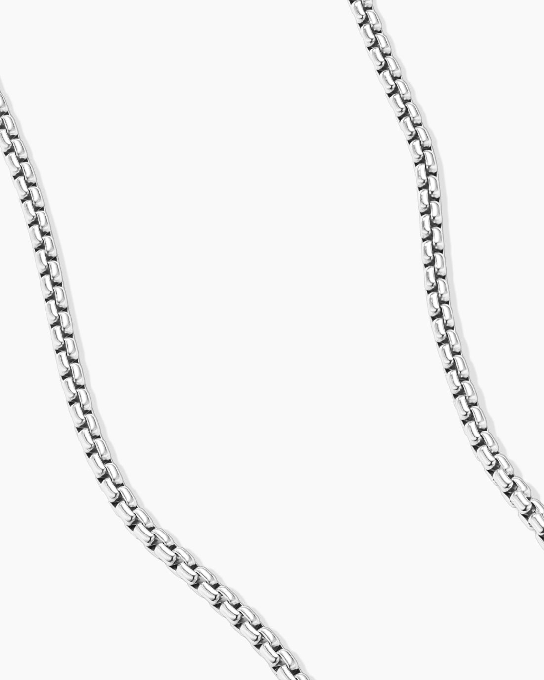 The Box Chain Necklace is crafted from polished sterling silver. Its timeless design makes it perfect for any occasion. Enjoy a sophisticated accessory that won't let you down.