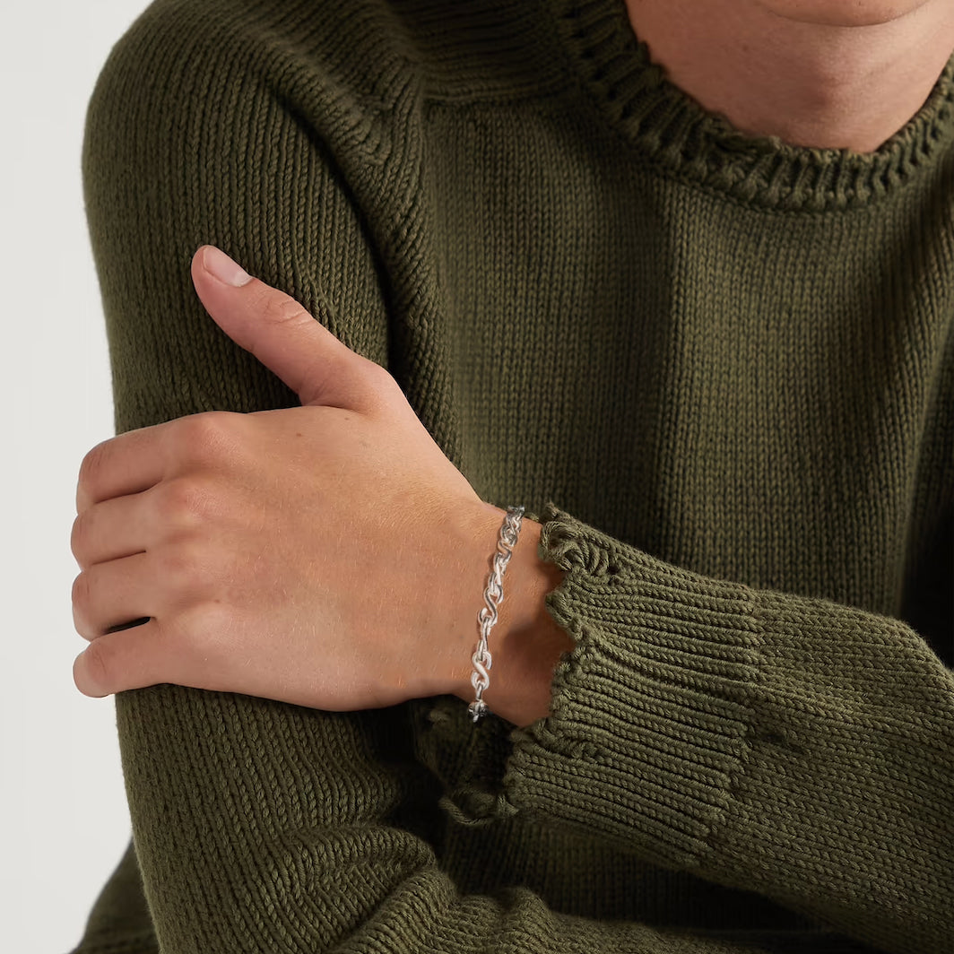 Inspired by timeless chunky chains, the S chain bracelet is an essential addition to any jewelry collection. Each part is single casted, polished and soldered together by hand, designed with our custom lock. This bracelet is made of 925 sterling silver.