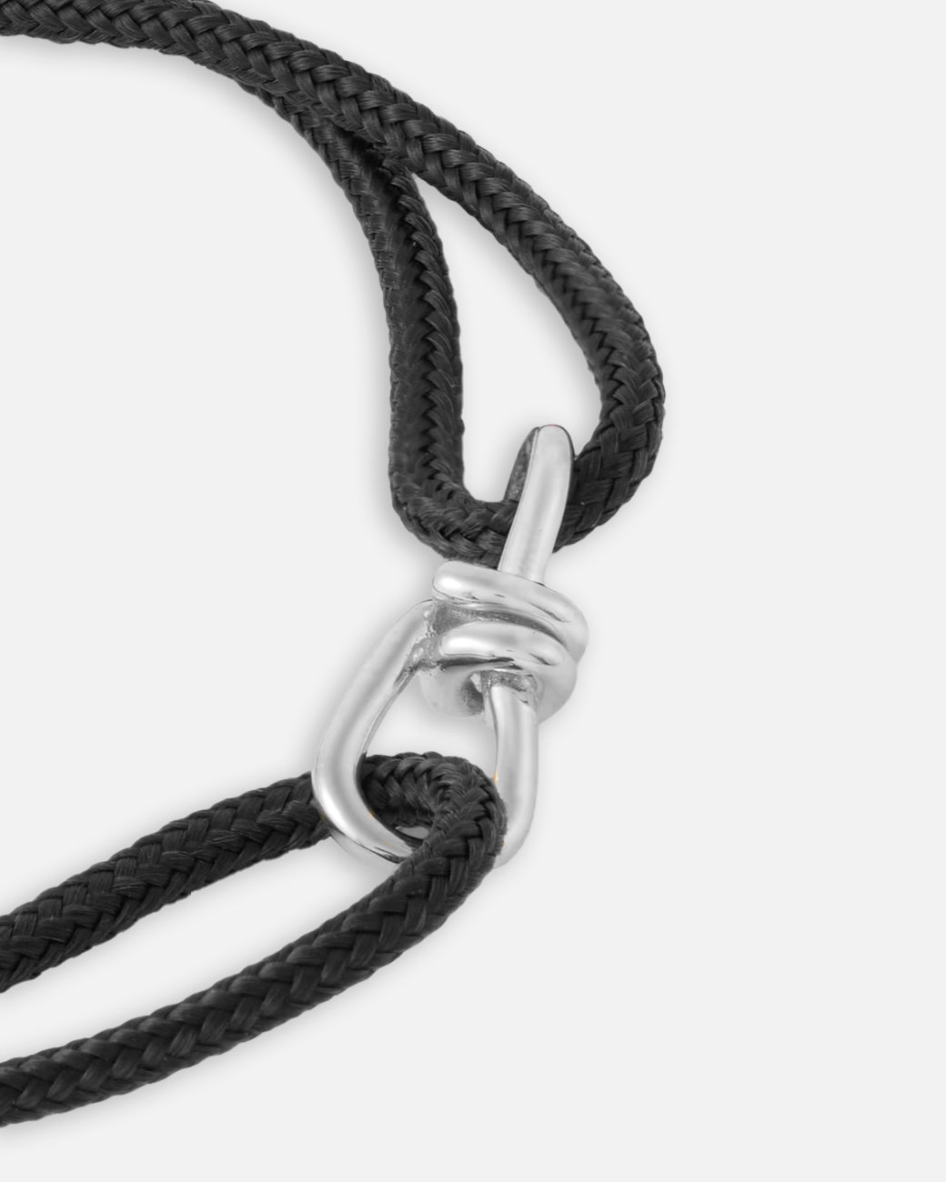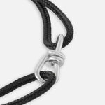 The Bond Bracelet, skilfully hand-crafted in Istanbul from sterling silver with a polished finish and a fine black cord.