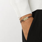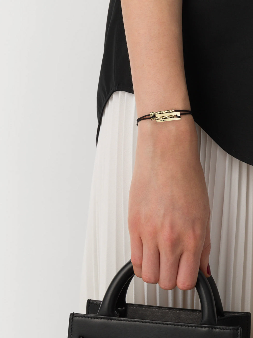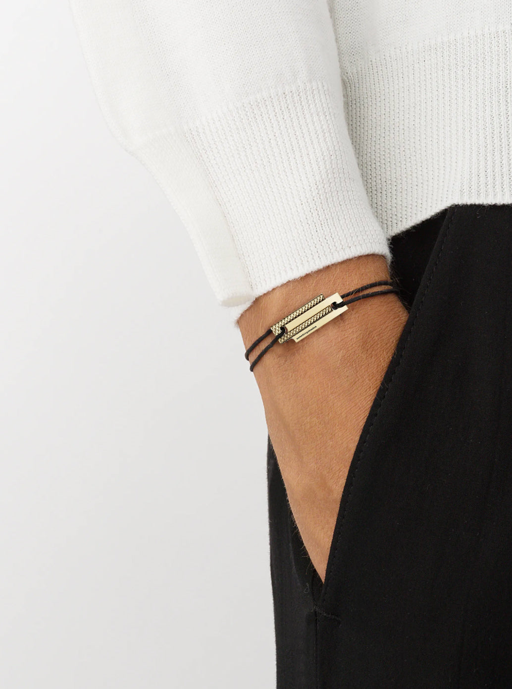 The Intersect Bracelet, skilfully hand-crafted in Istanbul from sterling silver with a polished finish and a fine black cord.