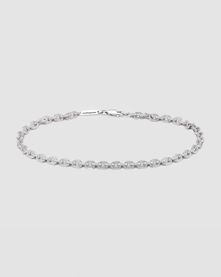 The Plain Bracelet is crafted from polished sterling silver. Its timeless design makes it perfect for any occasion, and its chain-style construction ensures it won't come off. Enjoy a sophisticated and lightweight accessory that won't let you down.