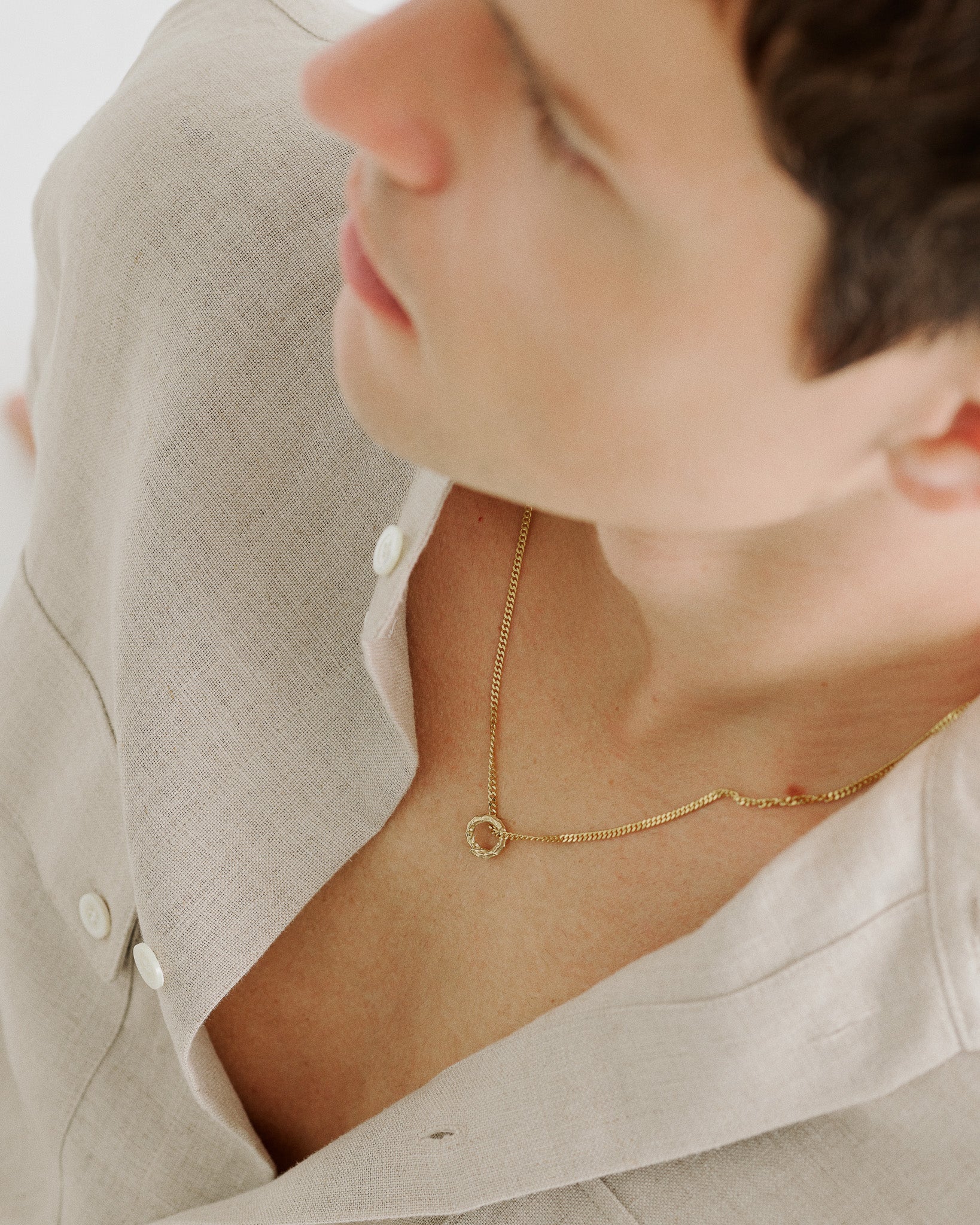 Crafted in sterling silver with a lightly hammered finish, the arc necklace blends raw texture with refined structure.