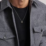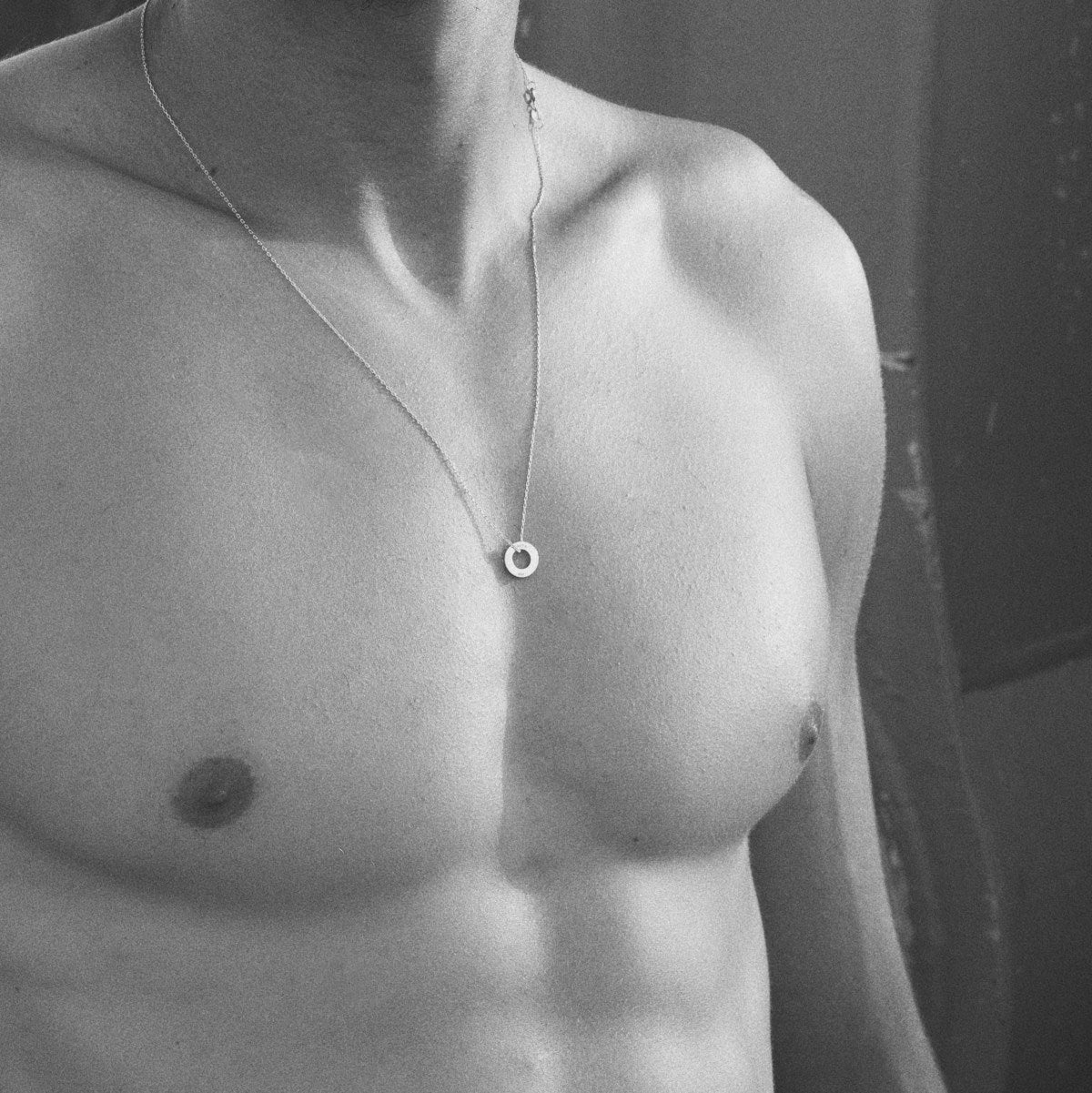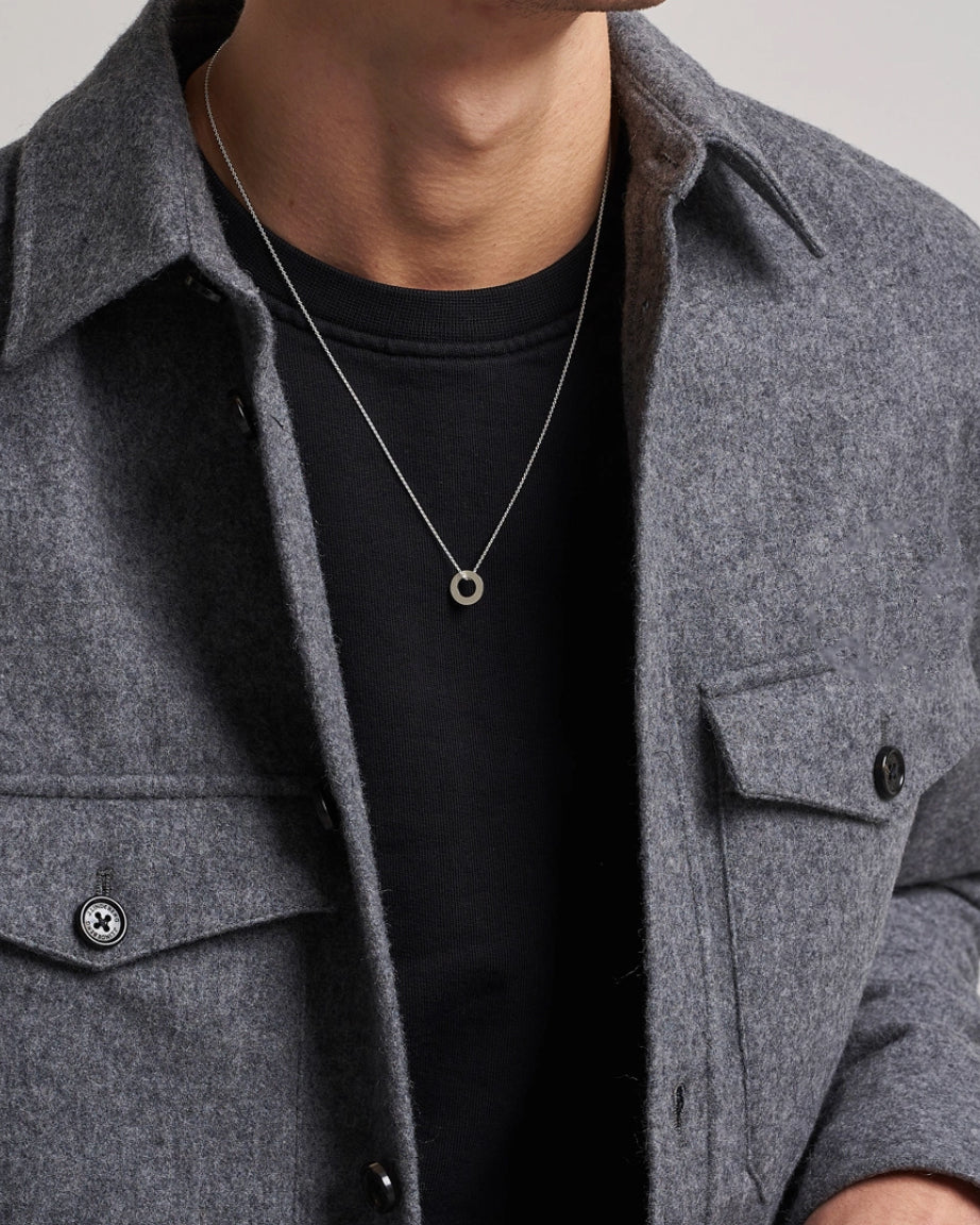 Precise forms and precious metals converge. The small track necklace in brushed sterling silver.