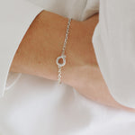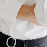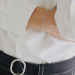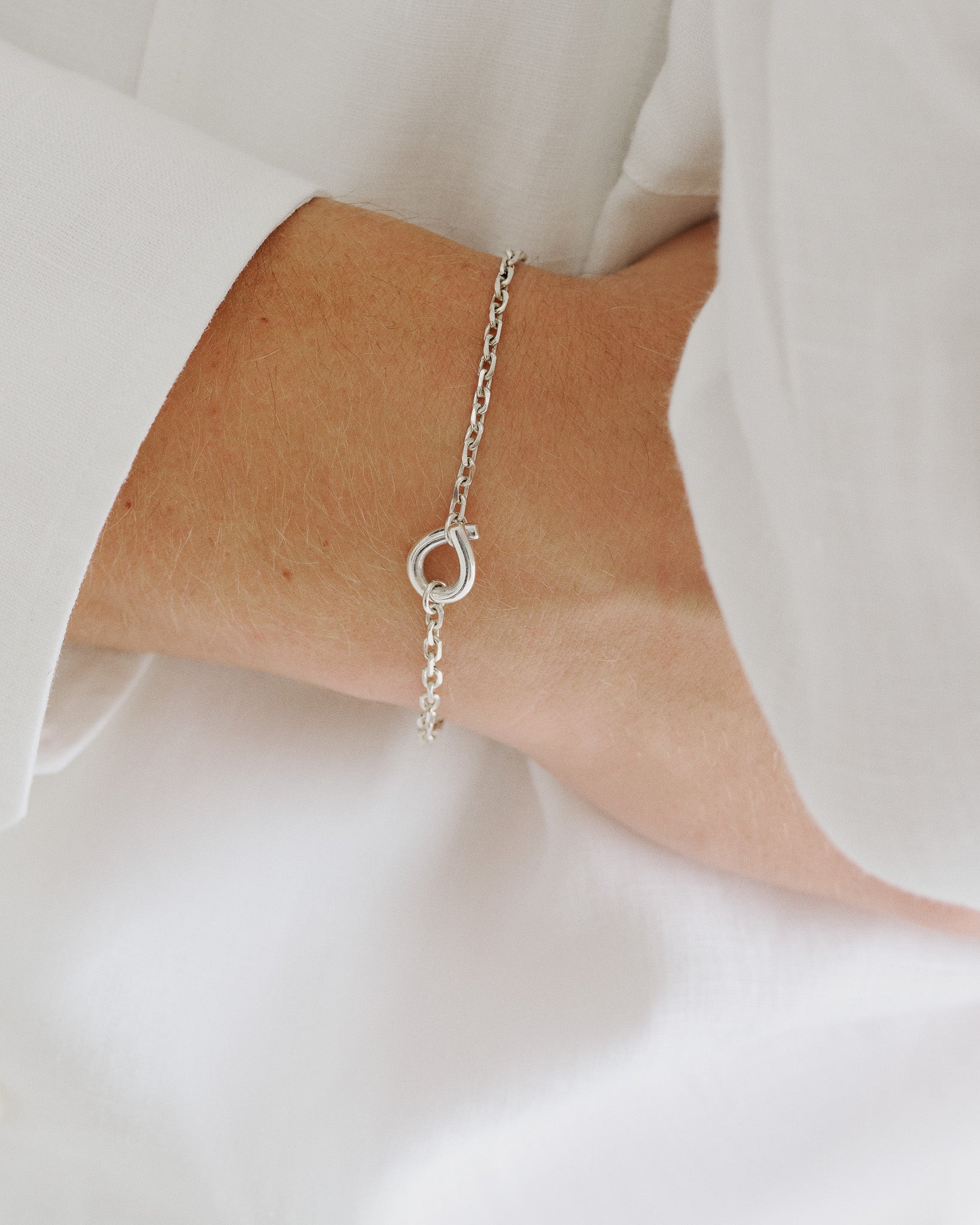 Crafted in silver, a singular cylindrical form rests with precision over its counterpart — secured by a force chain. Minimal in structure. Architectural in spirit.