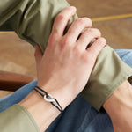 The Formed Bracelet, skilfully hand-crafted in Istanbul from sterling silver with a polished finish and a fine black cord.