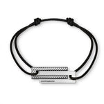 The Intersect Bracelet, skilfully hand-crafted in Istanbul from sterling silver with a polished finish and a fine black cord.