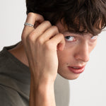 The Edge Ring is cast in solid sterling silver. This thin, elegant piece adds minimal, contemporary style, perfect for any look.