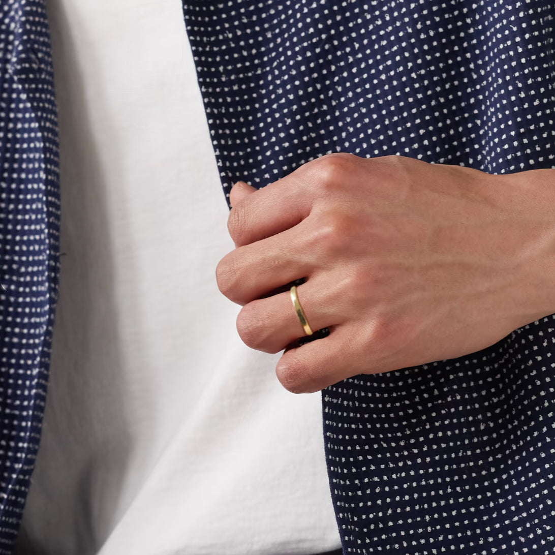 The Edge Ring is cast in solid sterling silver with a 14 gold plating. This thin, elegant piece adds minimal, contemporary style, perfect for any look.
