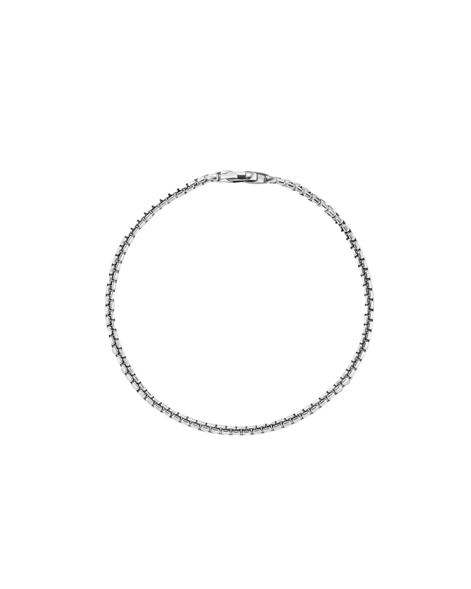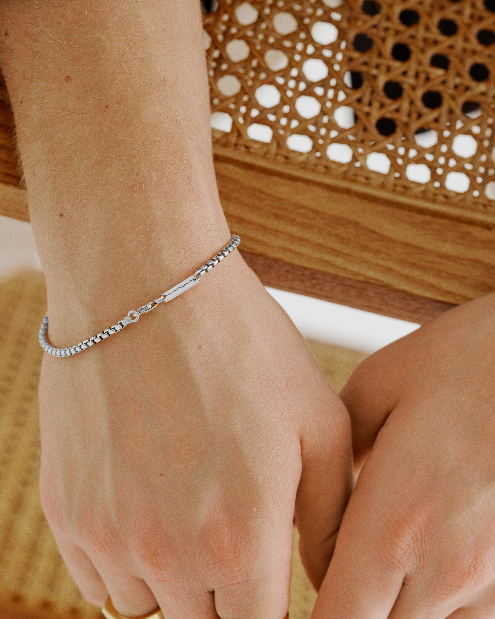 The Box Chain Bracelet is crafted from polished sterling silver. Its timeless design makes it perfect for any occasion. Enjoy a sophisticated accessory that won't let you down.