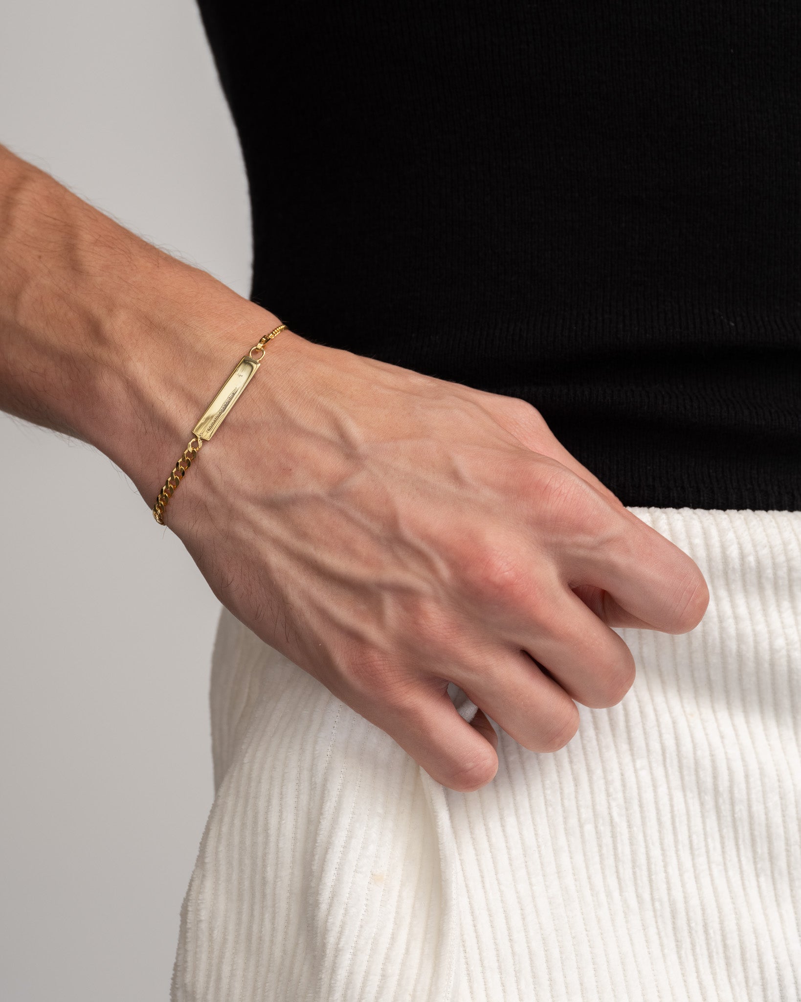 The Chain ID Bracelet is crafted from polished sterling silver and features gold plating. Its timeless design makes it perfect for any occasion, and its chain-style construction ensures it won't come off. Enjoy a sophisticated and lightweight accessory that won't let you down.