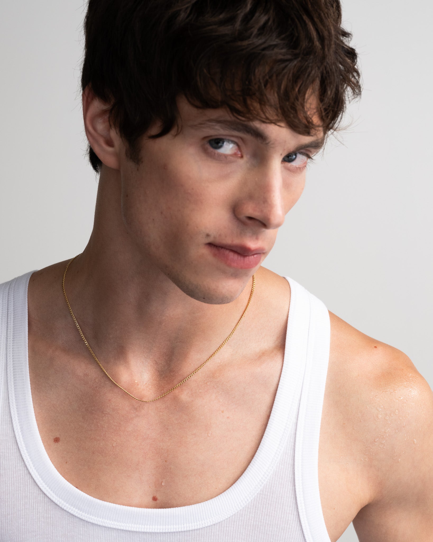 This sleek, curb necklace will make a unique fashion statement. Made with a polished solid 14k gold chain, this necklace is perfect for everyday wear. Its simple yet stylish design will give any outfit a timeless look.