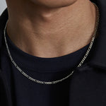 This sleek, silver figaro necklace will make a unique fashion statement. Made with a polished silver chain, this necklace is perfect for everyday wear. Its simple yet stylish design will give any outfit a timeless look.