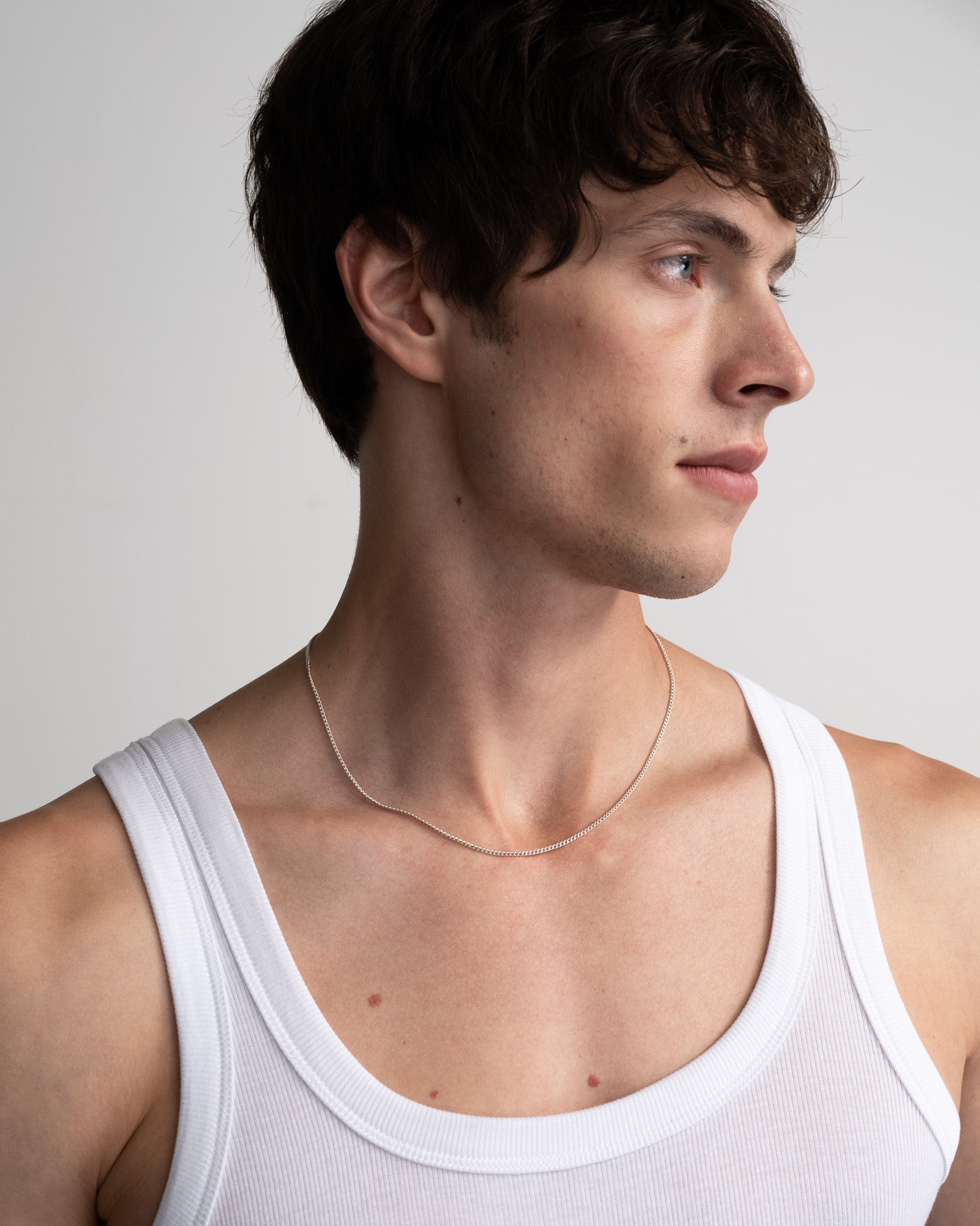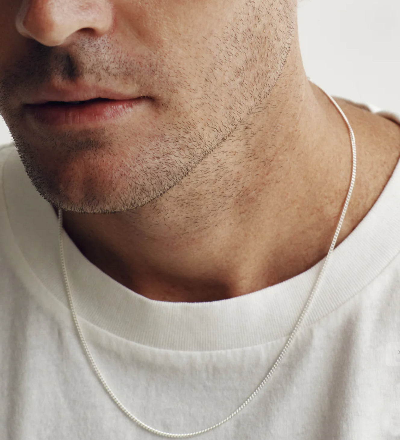This sleek, silver curb necklace will make a unique fashion statement. Made with a polished silver chain, this necklace is perfect for everyday wear. Its simple yet stylish design will give any outfit a timeless look.