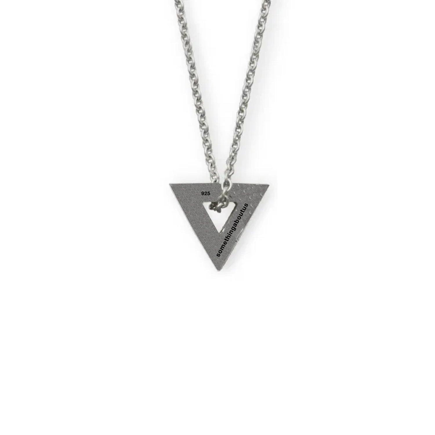 The small triangle necklace has been expertly crafted in Istanbul from sterling silver that's brushed on both sides. The triangle pendant is engraved with somethingaboutus logo - and strung on a thin chain.